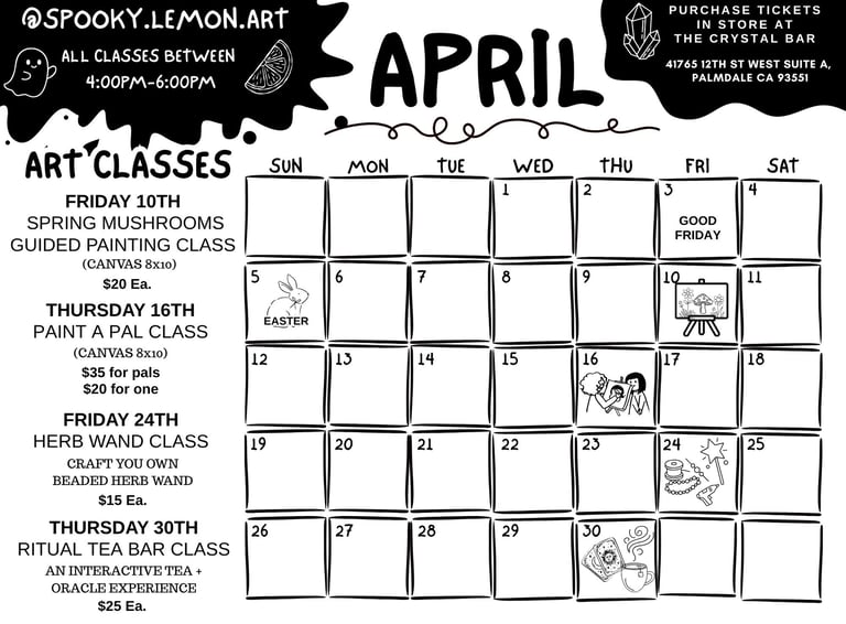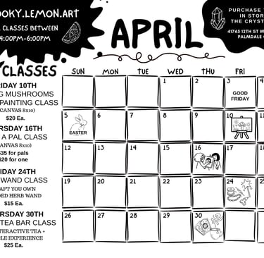 Lemon Terry Creations brings creativity, color, and soul to The Crystal Bar! She facilitates unique art classes that blend fun, self-expression, and sometimes a little spiritual magic. From intuitive painting to creative workshops with intention, her classes are perfect for all levels—whether you're here to relax, explore, or heal through art.